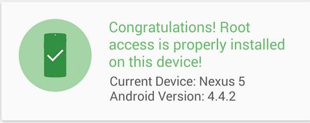 - A message should appear saying “Congratulations! Root Access is properly installed on this device!”